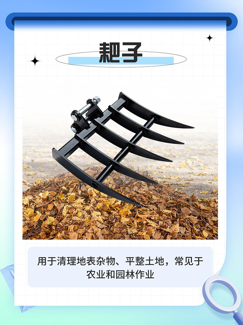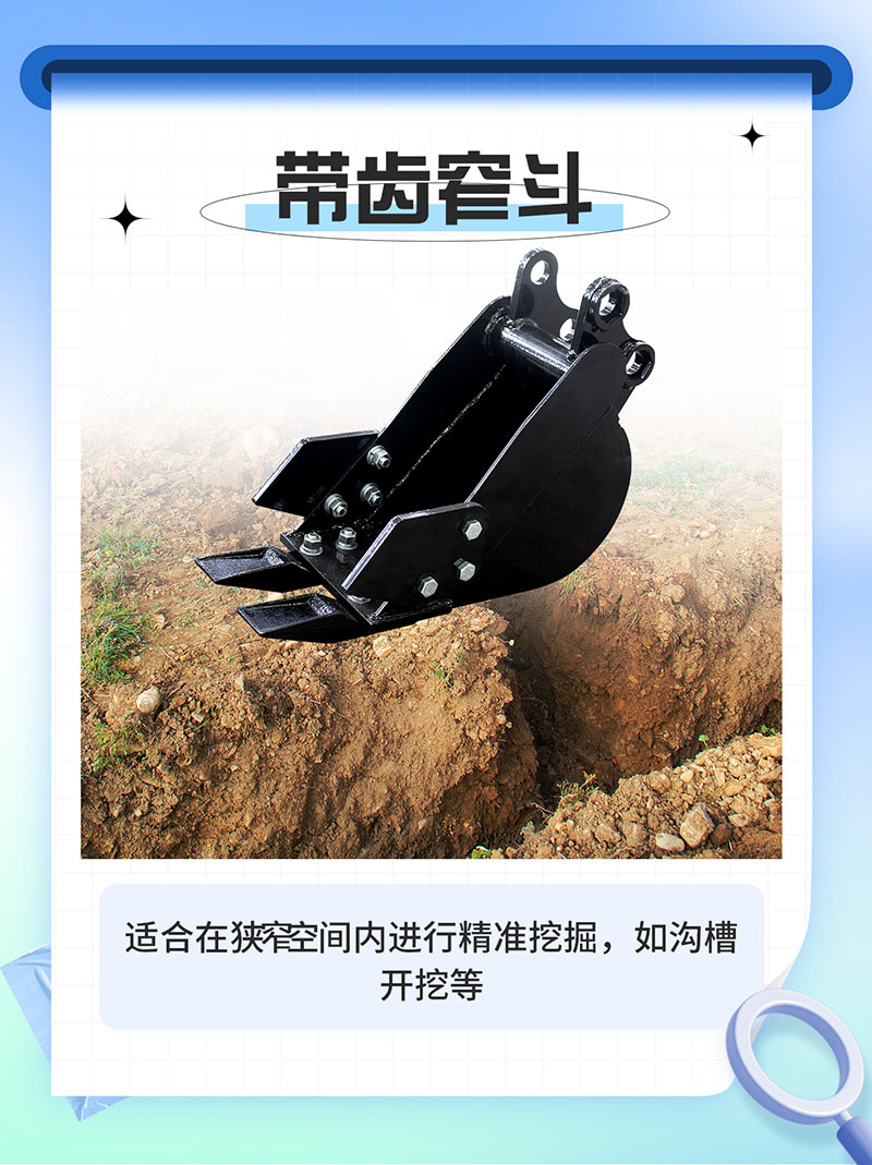 還有螺旋轉、耙子、帶齒窄斗等十幾種屬具,想怎么換就怎么換——今天挖溝,明天拆墻,后天還能幫你整理工地雜物,妥妥的“省錢小能手”!