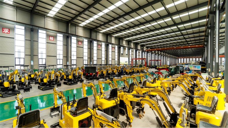 從園區(qū)航拍視角俯瞰,連片的標(biāo)準(zhǔn)化廠房有序排布,構(gòu)成了海拓的“智造大本營(yíng)”。首站來到成品展示車間—— 剛完成終檢的挖掘機(jī)、割草機(jī)等設(shè)備整齊陳列,锃亮的外觀與規(guī)整的標(biāo)識(shí)彰顯著工藝細(xì)節(jié),質(zhì)檢人員正通過專業(yè)儀器對(duì)設(shè)備性能參數(shù)做最終核驗(yàn),確保每一臺(tái)出廠產(chǎn)品均符合行業(yè)標(biāo)準(zhǔn)。