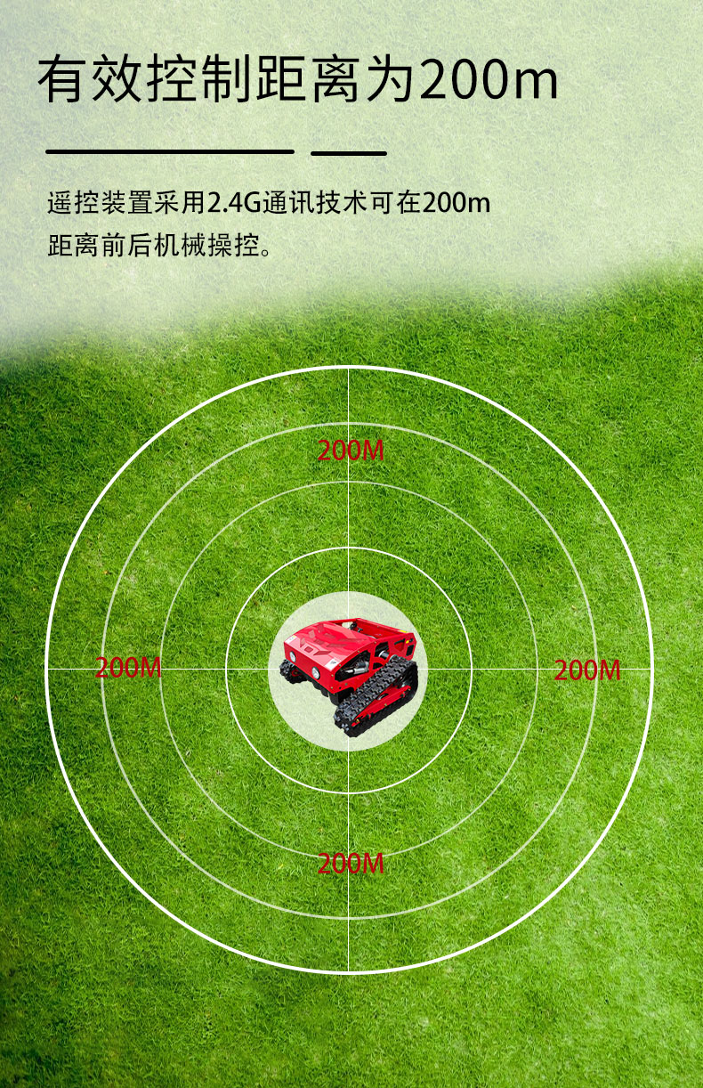 遙控裝置采用2.4G通訊技術(shù)可在200m距離前后機(jī)械操控。