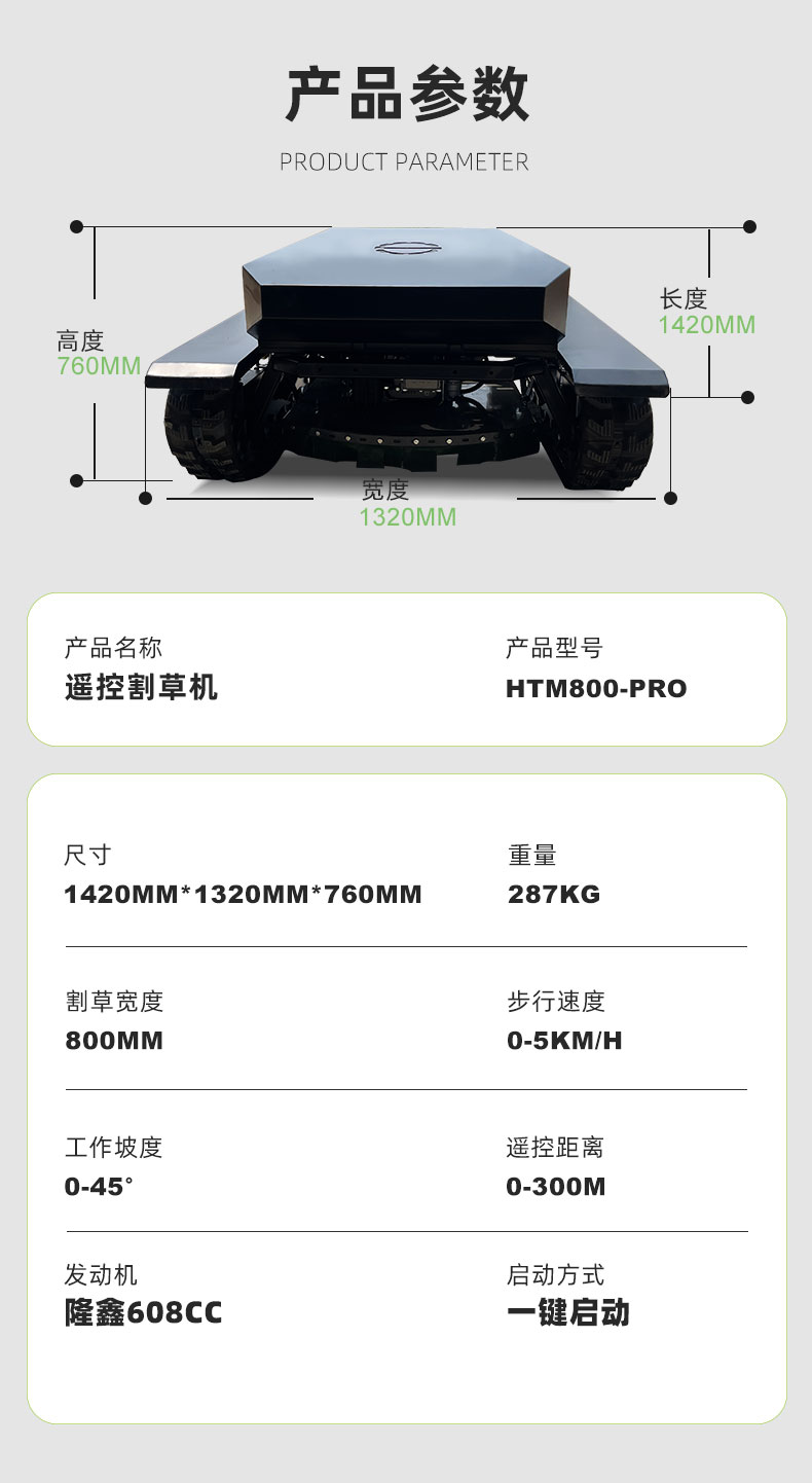 HT-800PRO 遙控履帶割草機(jī)參數(shù)