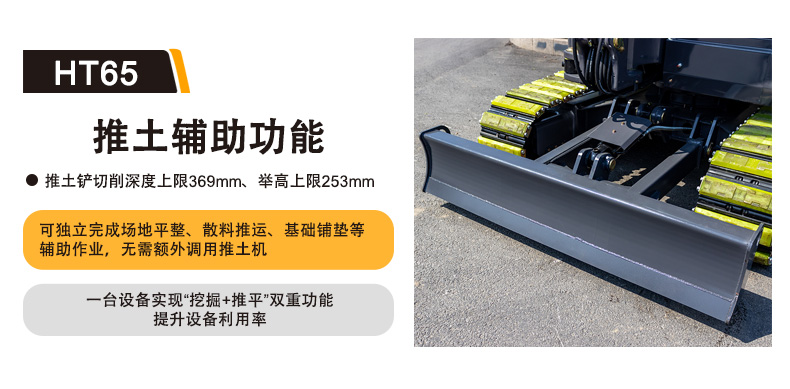 8. 推土輔助功能實用:推土鏟最大切削深度369mm、最大舉高253mm,可獨立完成場地平整、散料推運、基礎鋪墊等輔助作業(yè),無需額外調用推土機,一臺設備實現(xiàn)“挖掘+推平”雙重功能,提升設備利用率。