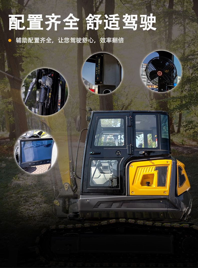 5. 作業(yè)效率優(yōu)化設計:12r/min的旋轉速度比同級別多數(shù)機型更快,可快速調整鏟斗作業(yè)方向,減少等待時間;0.23m3鏟斗容量適配機身功率,實現(xiàn)“挖掘-卸料”高效循環(huán),避免動力浪費或過載作業(yè)。